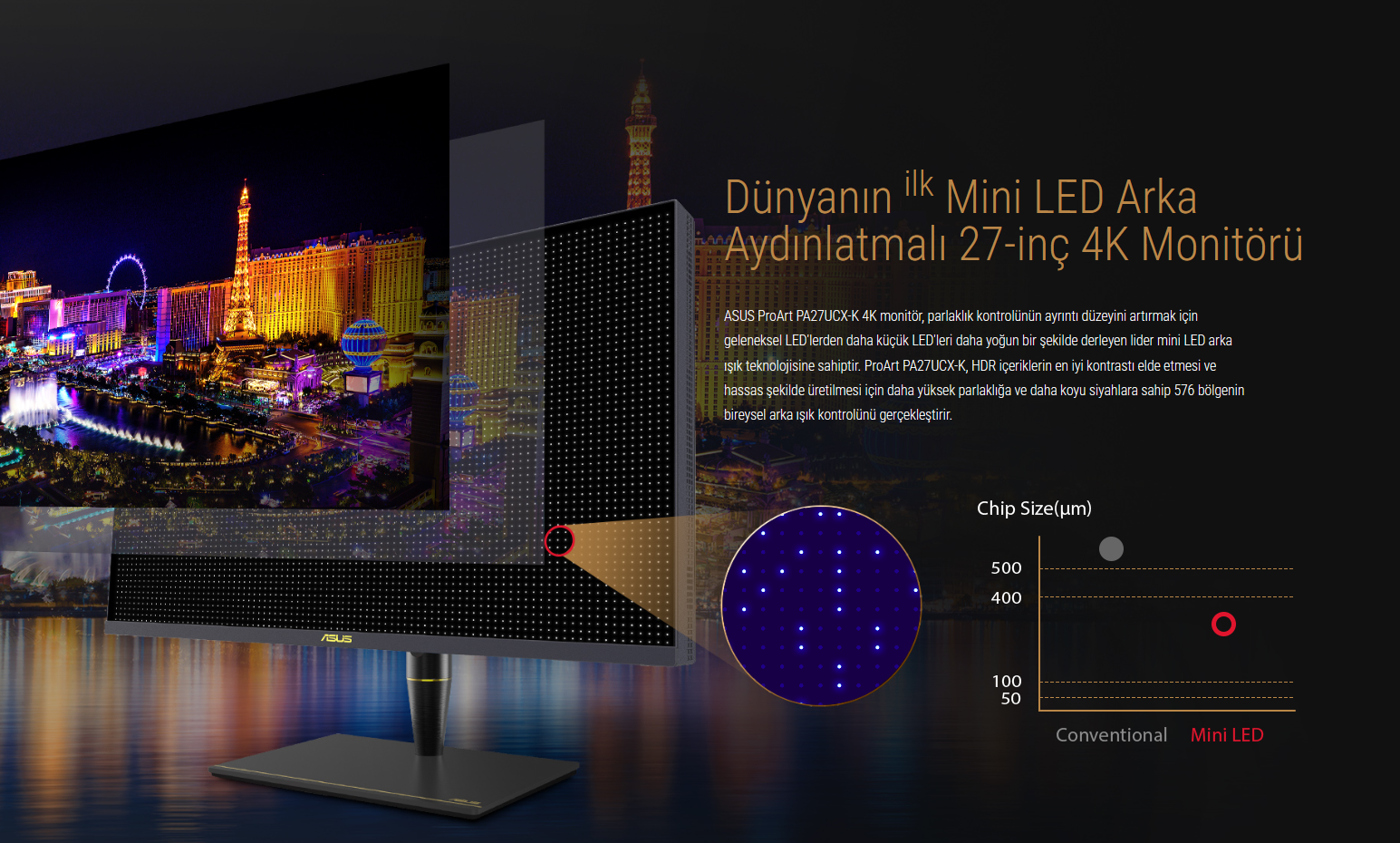 27-inç Mini LED Arka Aydınlatma ile 4K HDR, 576 bölgeli yerel ışık kısma
