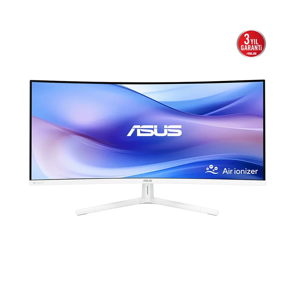 ASUS VU34WCIP-W Eye Care Monitör - 34 inç, WQHD (3440x1440),1500R Kavis, Çerçevesiz, 100Hz, Hava İyonizeri, SmoothMotion, Eye Care Plus teknolojisi, USB-C PD 65W, Stereo Hoparlörler, Çevreci Sürdürülebilirlik