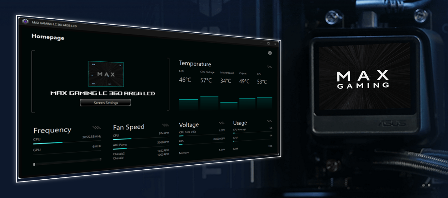 Max Gaming LC 360 ARGB LCD, soğutmanın önemli özelliklerini 2,4 inç LCD ekran ve kolay kurulumla birleştirir. Pompa, CPU’nuzun gerçek potansiyeliyle çalışmasına yardımcı olurken 2,4 inç LCD ise CPU veya GPU performansını takip etmenize olanak verir. Ek olarak, önceden monteli birleştirilebilen ARGB fanlar kurulum ve kablo yönetim kolaylığı sağlar.