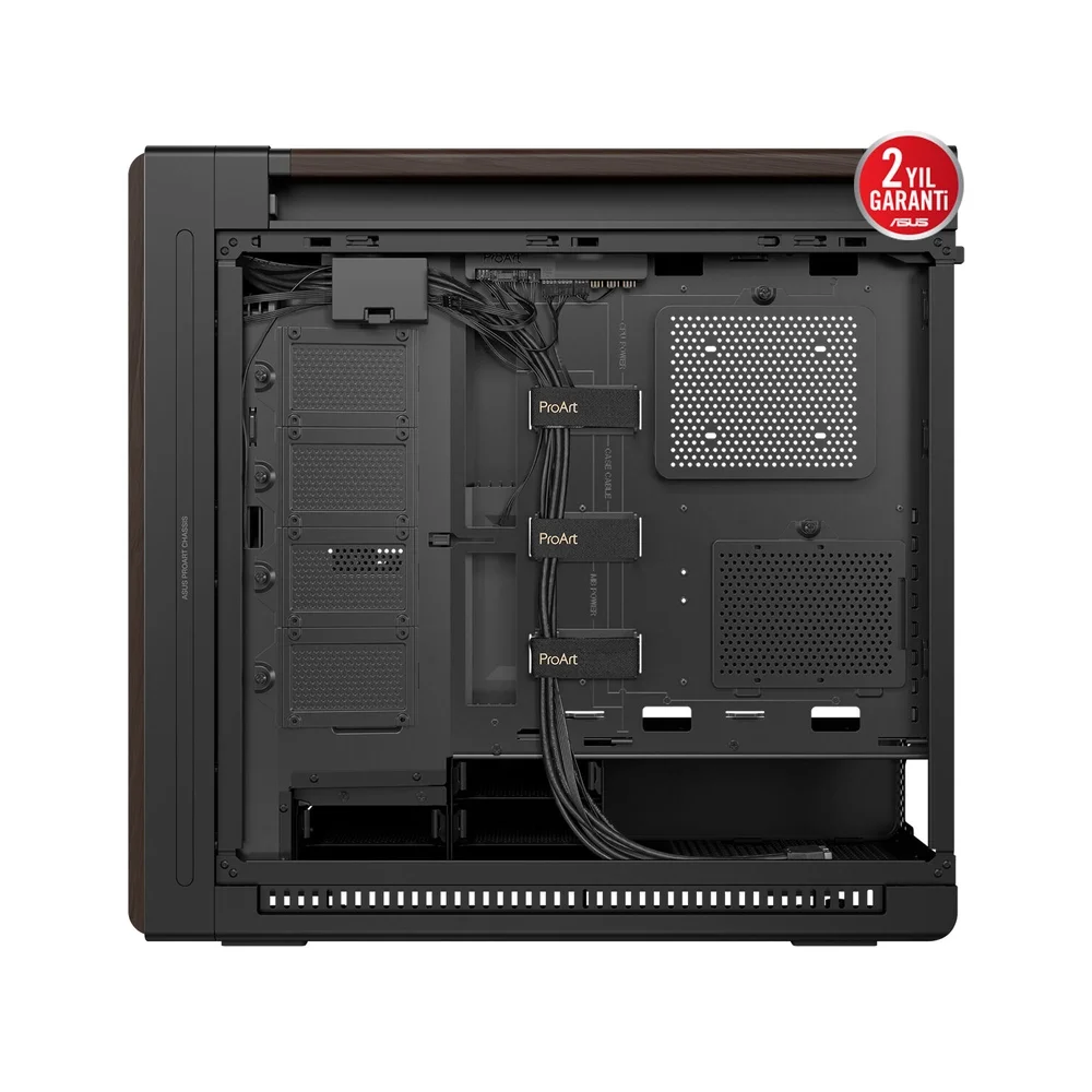 ProArt PA602 Wood Edition Modern Black, farklı kullanıcılara hitap etmek için iki farklı sürüme sahip. Metal yan paneli olan sürüm soğutma verimliliğine ve dayanıklılığa öncelik verirken temperli camdan yan panele sahip olan sürüm sisteminizin içini sergileyebilmeniz için daha fazla fırsat sunar.