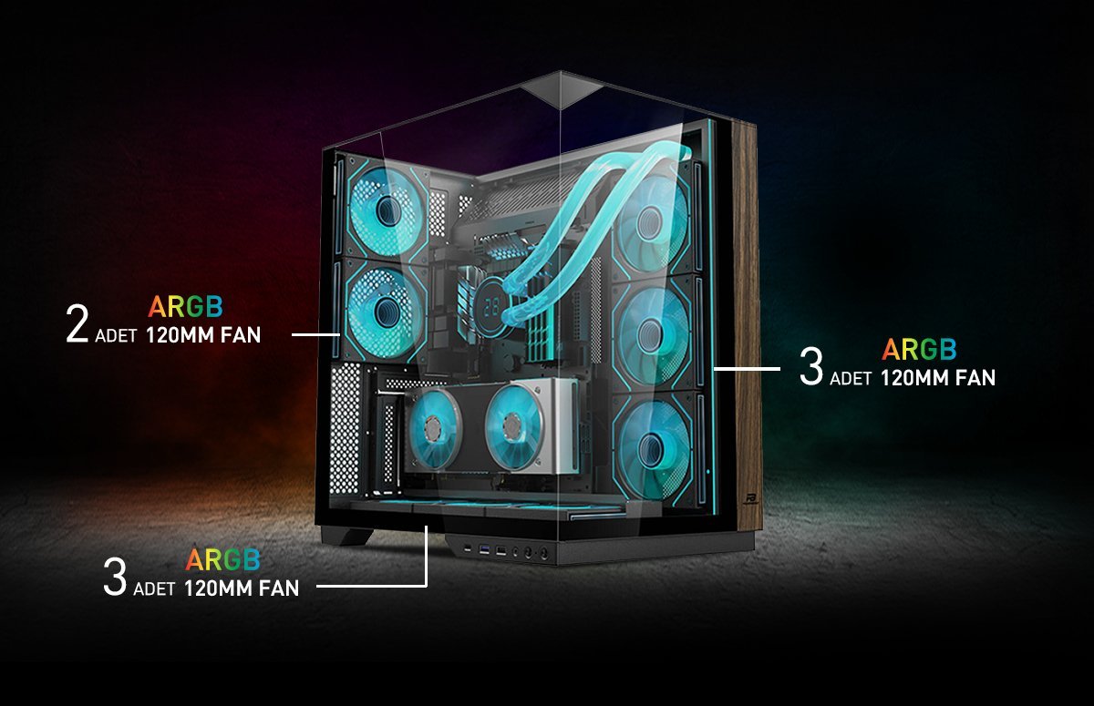 PowerBoost Eclipse gaming kasa, en iyi soğutma performansı sağlamak için sağ yanda ve altta 3 adet, arkada olmak üzere 2 adet 120mm ARGB aydınlatmalı sessiz fana sahiptir. Güçlü sistemler için olağanüstü soğutma performansı sunar. Ayrıca ARGB fanları kasanınızın içinde muhteşem görünüm sağlar.