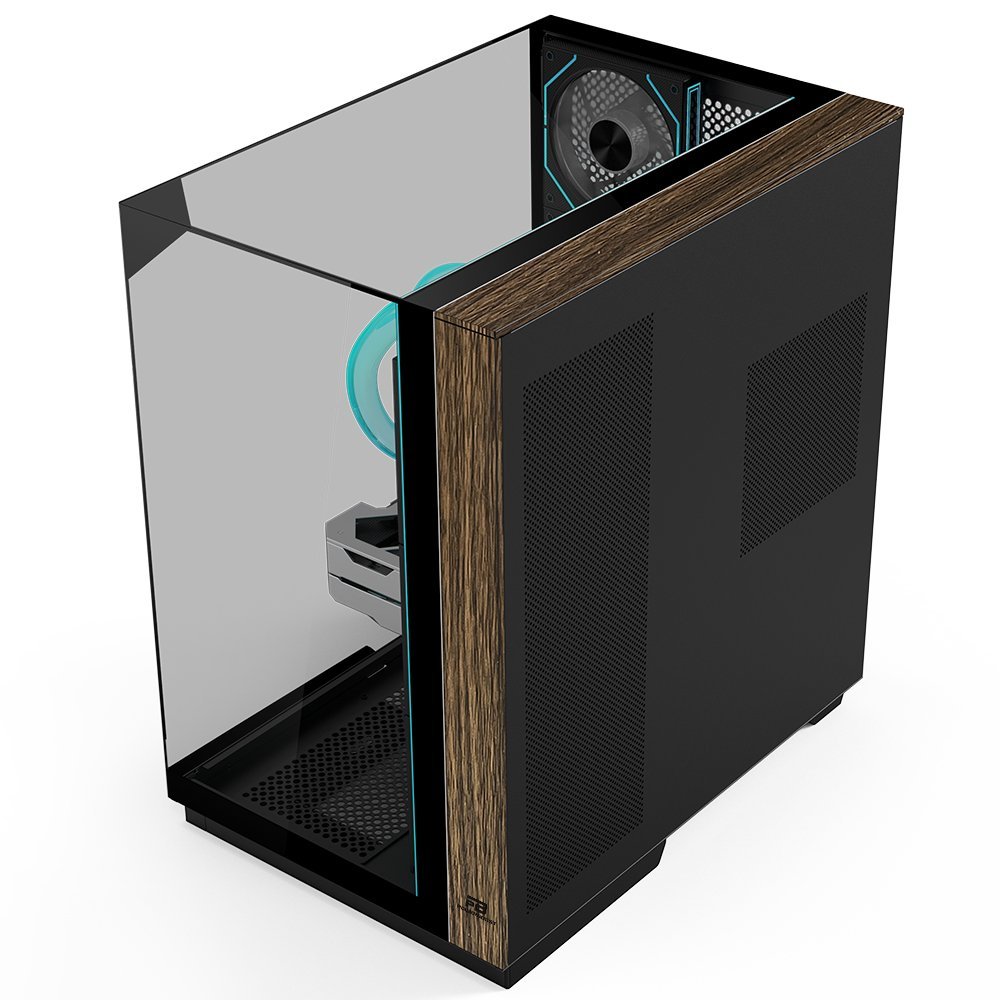 PowerBoost Eclipse gaming kasa, ahşap tasarım detayı ve 3 tarafı temperli cam tasarımı ile tüm dikkatleri üzerine çeker.