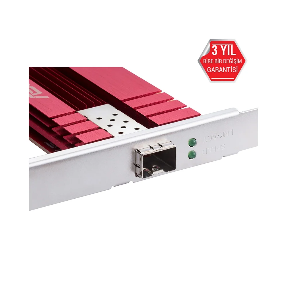 - Son derece yüksek 10 Gbps hız - Hızlı dosya aktarımı, akıcı 4K yayın ve düşük gecikme süreli oynanış için gigabit Ethernet’ten 10 kata kadar yüksek yeni nesil bağlantı hızları. - Fiber optikle daha ileriye - En yeni yüksek hızlı iletim teknolojisi, bakır kablolara daha uzun mesafeleri kapsıyor. - Şık dahili soğutma - Şık alüminyum soğutma bloğu kesintisiz çalışma için ısıyı verimli bir şekilde uzaklaştırıyor. - Otomatik öncelik - Dahili QoS teknolojisi önemli yayınlar veya oyunlarda bant genişliğini otomatik olarak artırıyor. - Doğrudan eklenen bakır (DAC) - SPF+ Cage sayesinde DAC bağlantılarla da uyumlu. |
